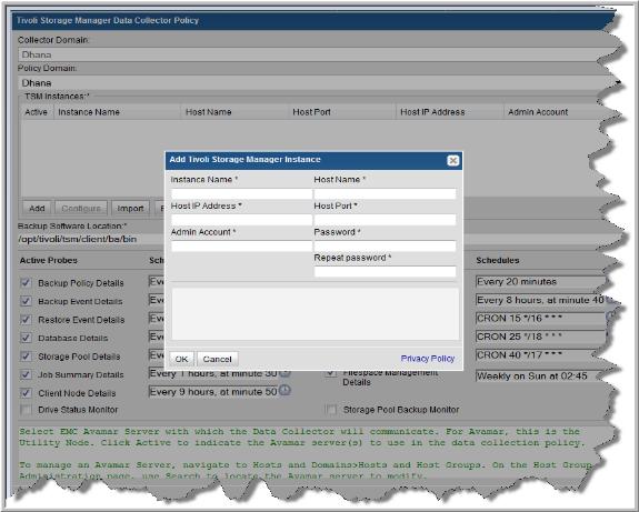 Instance Name | The name assigned to the IBM TSM instance. This is a separate instance of the server software running on a IBM TSM server. A single IBM TSM server can run multiple IBM TSM instances. An instance is defined by instance name, host name, and port number. |