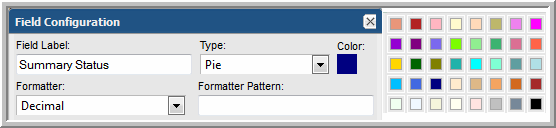 Formatter | The formatter list includes only values relevant for the field. For example, numeric fields have only numeric formatters listed, such as Number, Currency, and File Size. See Valid Formatter Patterns. |
