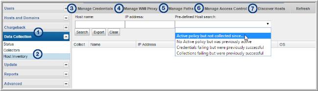 3. Manage Credentials - Configure user IDs and passwords for authentication when the data collector is accessing hosts.