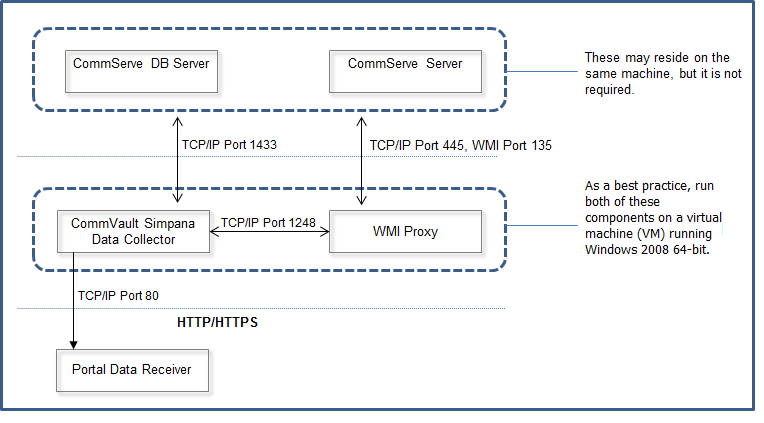 To collect more detailed information about individual jobs the Data Collector connects to the CommServe server via WMI and executes the sendLogFiles.exe tool to retrieve the client log files. These are then retrieved from the C$ administrative share. To retrieve this more-detailed information a Windows logon with administrative access to the CommServe server must be supplied.