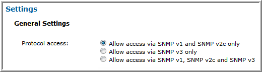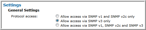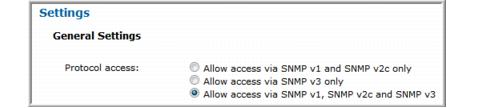 SNMP v1 and v2c only | • Enable access:  • If SNMP v2c is allowed, then the read-only community string must be set.  |