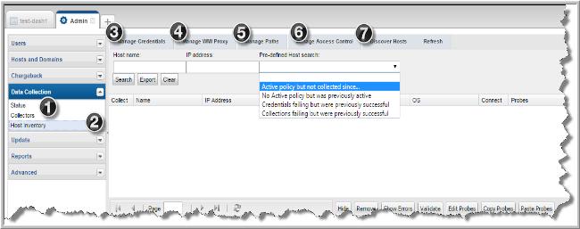 3. Manage Credentials - Configure user IDs and passwords for authentication when the data collector is accessing hosts.