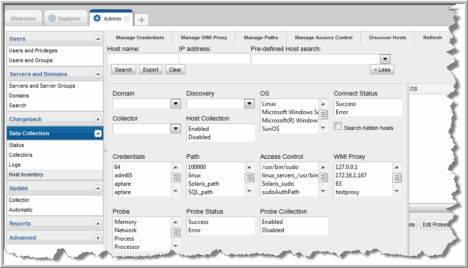 Private Key File | For Linux hosts only: If you have configured Public Key/Private Key between your Data Collector Server and the Hosts you intend to monitor, use this field to specify the location of the Private Key file on the Data Collector Server. | /root/.ssh/id_rsa or C:\Program Files\Aptare\mbs\conf\id_rsa |