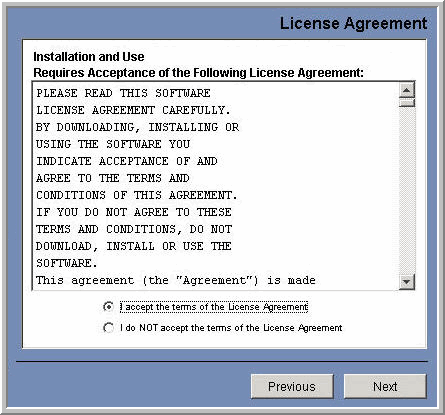 License Agreement screen and prompt you to accept the end-user license agreement (EULA) to continue.