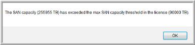 The above message is related to storage array capacity licensing. For specific definitions of these types of licenses, see