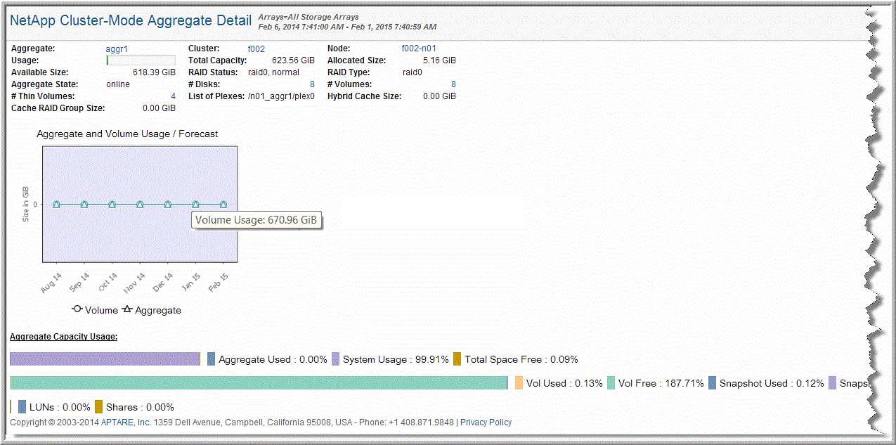 Aggregate | Name of the NetApp aggregate. Drill down to NetApp Volumes at Risk. |