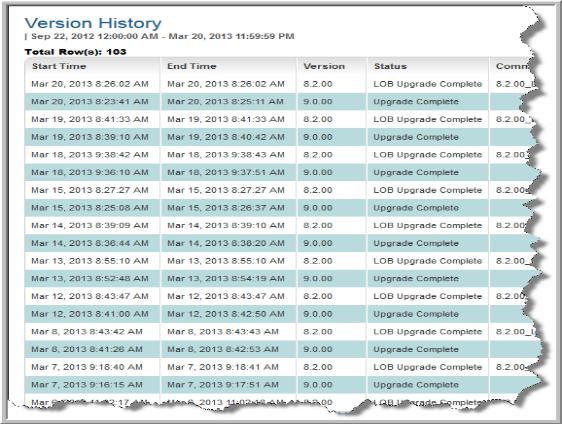 System Administration Reports > Version History