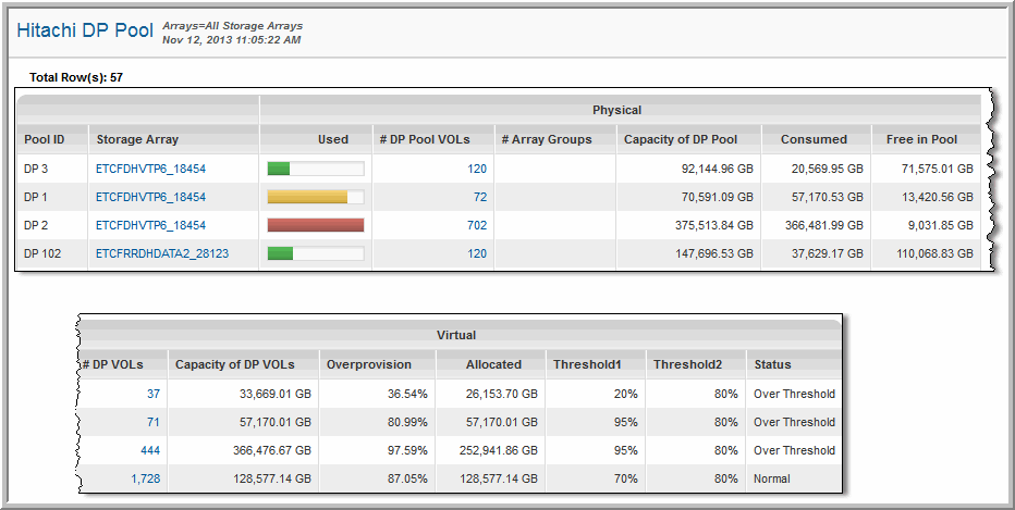 # of DP VOLs | The number of virtual volumes in this Dynamic Provisioning pool; links to the LUN Utilization Summary. This is capacity that is available to be allocated to hosts; associated capacity. |