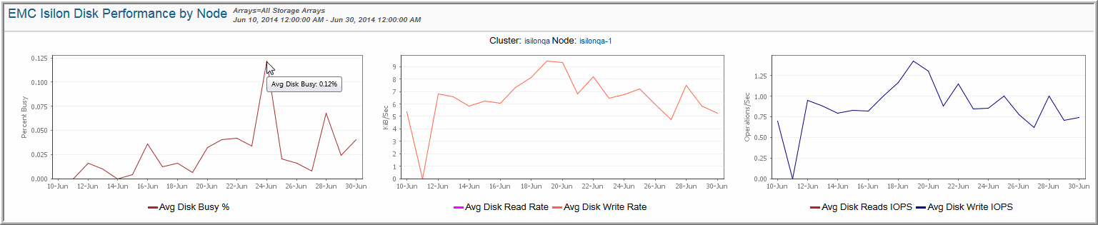Storage Viewer for Capacity > Storage Performance > EMC Isilon Disk Performance by Node