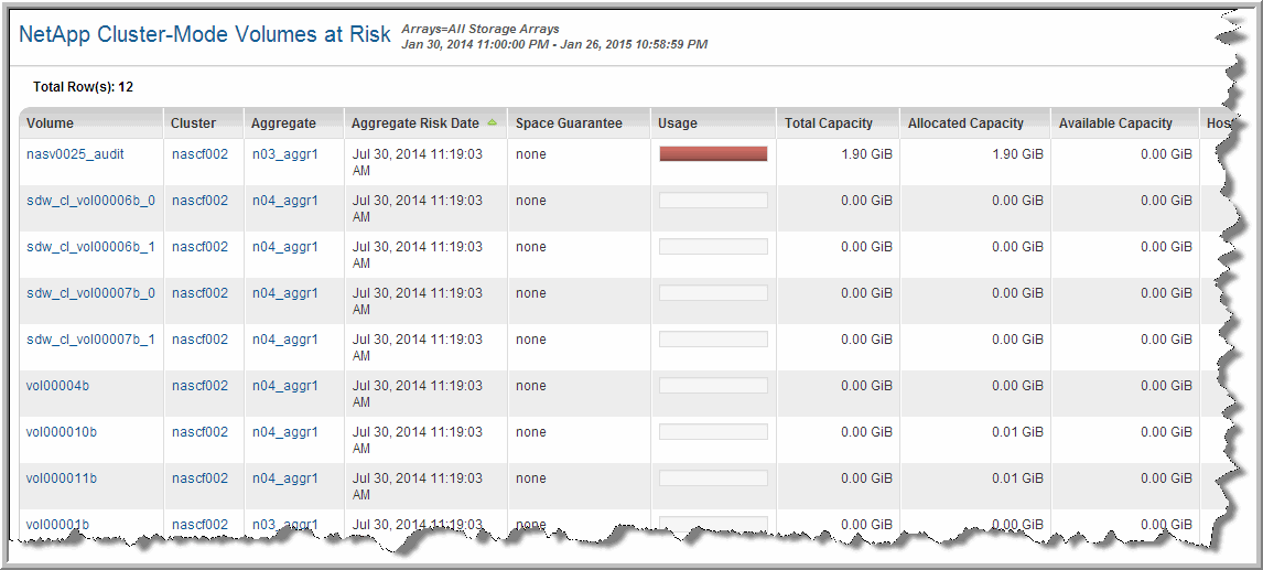 NOTE: Host resources data collection must be implemented in order to determine which NetApp Volumes are at risk.