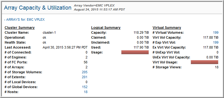 # of Global Devices | Number of local devices with global visibility, available to resident or remote VPLEX clusters. |