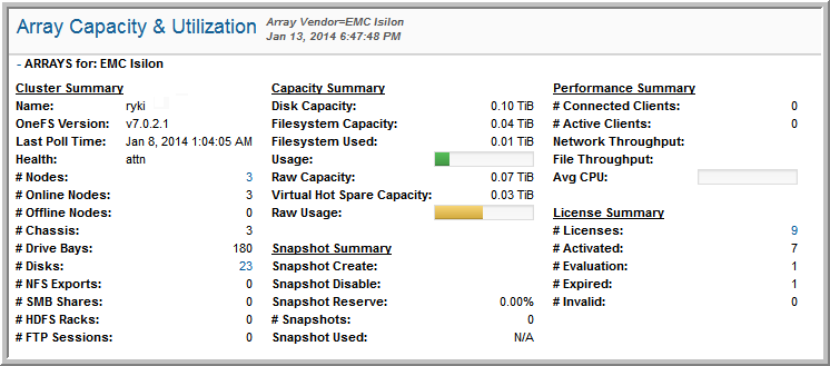 # Licenses | Total number of Isilon licenses. This link drills down to the License Summary report. |