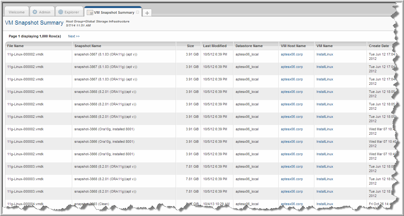 Storage Viewer for Virtual Servers > Administration Reports > VM Snapshot Summary