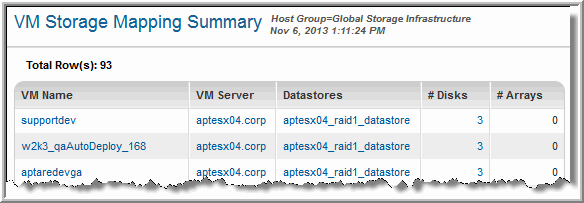 Storage Viewer for Virtual Servers > Administration Reports > VM Storage Mapping Summary