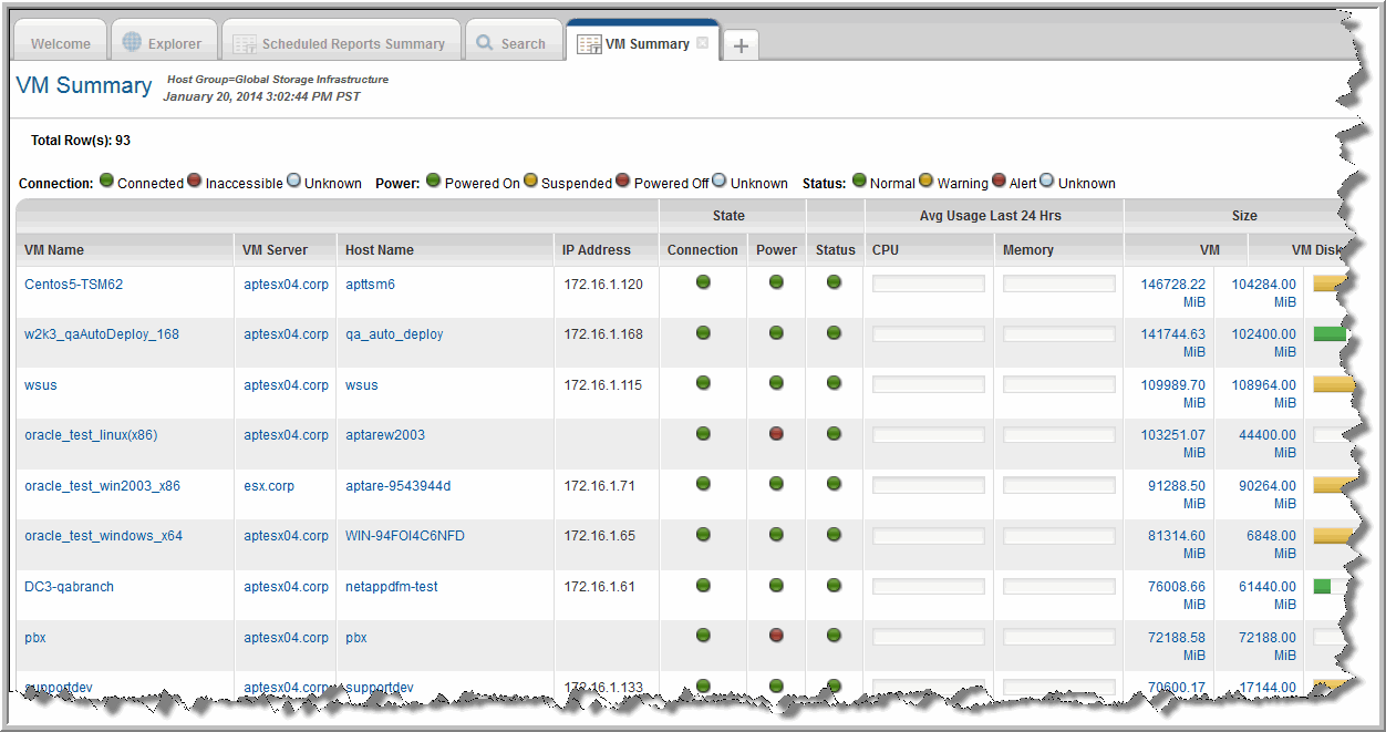 Status | This is essentially an alarm indicator that reflects the condition of the resources: Gray=Status Unknown, Green=Normal, Yellow=Warning, Red=Alert, definite problem |