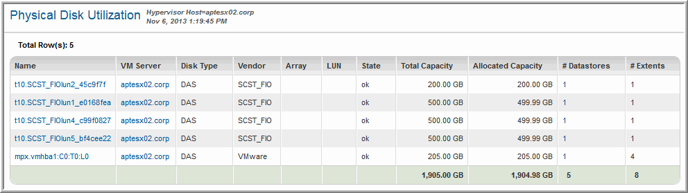 Storage Viewer for Virtual Servers > Storage Capacity & Utilization > Physical Disk Utilization