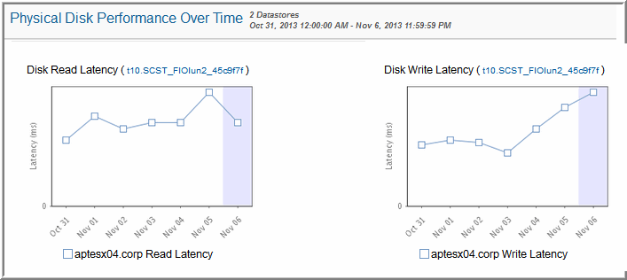 Storage Viewer for Virtual Servers > Performance Reports > Physical Disk Performance Over Time