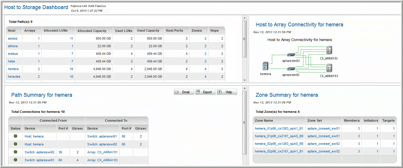 Storage Viewer for SAN Fabrics > Administration Reports > Host to Storage Dashboard