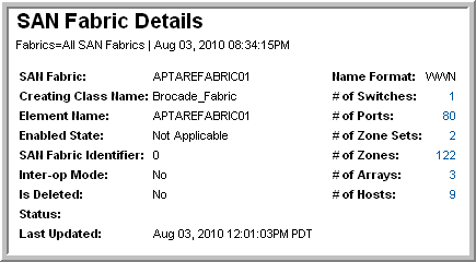 # of Zones | The number of zones in the SAN Fabric. Click the link to view the Zone Summary. |
