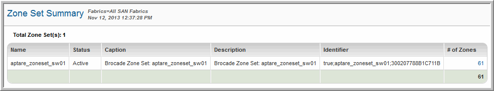 Storage Viewer for SAN Fabrics > Administration Reports > Zone Summary