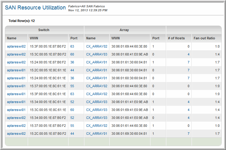 Storage Viewer for SAN Fabrics > Capacity & Utilization > SAN Resource Utilization