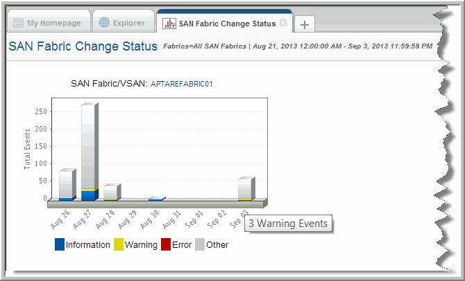 Storage Viewer for SAN Fabrics > Change Management Reports > SAN Fabric Change Status Summary