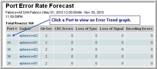 Storage Viewer for SAN Fabrics > Forecast & Planning > Port Error Rate Forecast