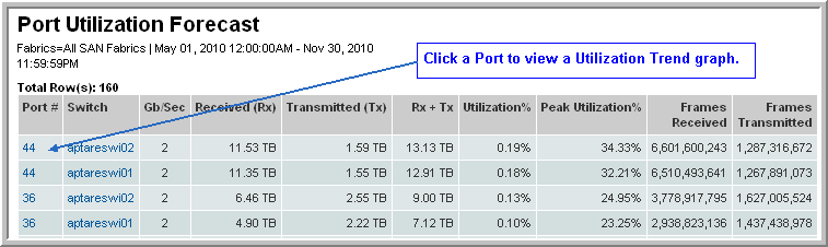 Storage Viewer for SAN Fabrics > Forecast & Planning > Port Utilization Forecast