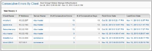 Storage Viewer for Backup > Management Reports> Consecutive Errors by Client