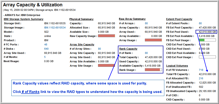 Array Capacity & Utilization (IBM Enterprise Array View)