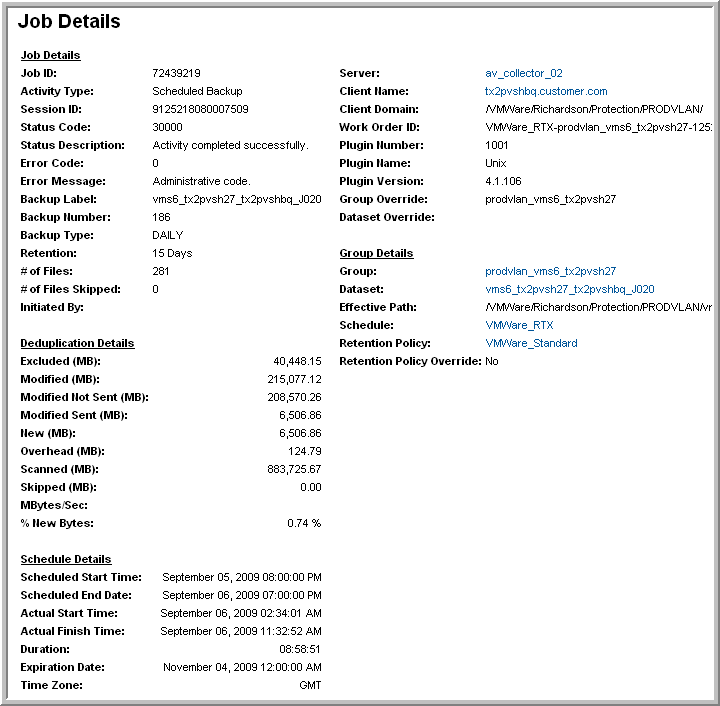 Start Date/Time | Date and time of the beginning of the backup job. |