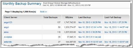 Last Backup | The Monthly Backup Summary provides you with the date and time of the most recent backup event for each host in their host group. Clicking on the link will take you to the Job Details report where you can view backup details. |