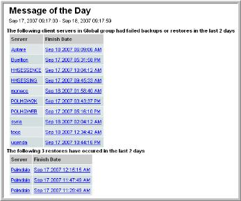 This report provides a starting point for handling issues that require immediate attention. Specifically, it lists the failed backups and restores per server. From these lists, you can drill down to the