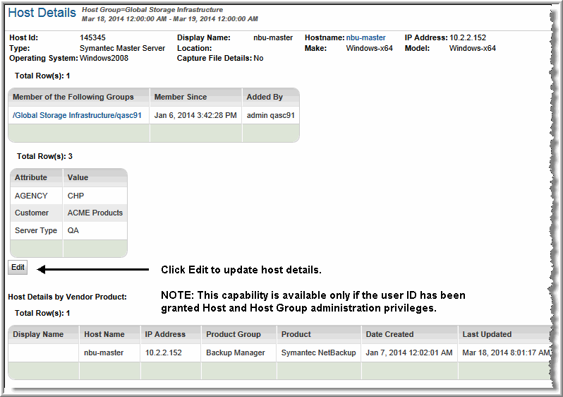 Host Group Membership | Click a group link to access the Host Group listing. |