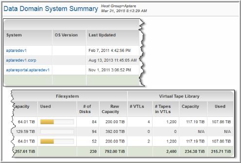 Storage Viewer for Backup > Storage Utilization Reports > Data Domain System Summary