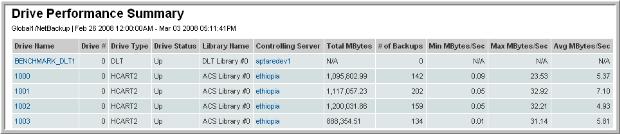 For NetBackup jobs, the drive performance algorithm takes into account the use of multiple tapes, as some backups require the dismounting and re-mounting of several tapes. The Kilobytes/second rate is calculated for each piece of tape media used by the backup job.