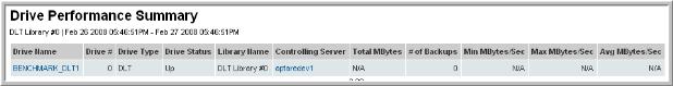 Min MBytes/Sec | These three values provide indicators of the drive’s performance. The Maximum rate represents the fastest speed that a job ran during the selected time frame. Likewise, the Minimum rate represents the slowest speed that a job ran during the same time frame. For NetBackup specifics, see NetBackup Drive Performance Summary. |