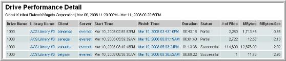 Storage Viewer for Backup > Storage Utilization Reports > Drive Performance Summary