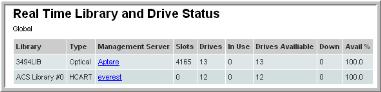 Storage Viewer for Backup > Storage Utilization Reports > Real Time Library and Drive Status