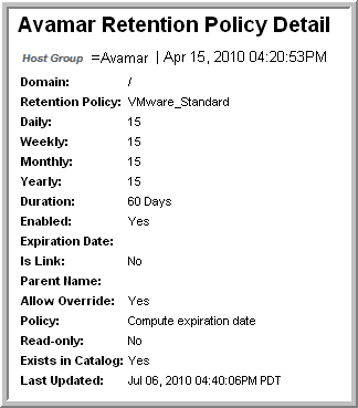 Domain | The specific zone on the Avamar server; the Avamar domain to which this retention policy applies. |