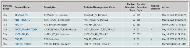 Domain Name | A backup group of filesystems and drives. Click this link to access the Policy Domain Details. |