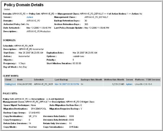 Storage Viewer for Backup > Backup Policies > TSM Policy Domains