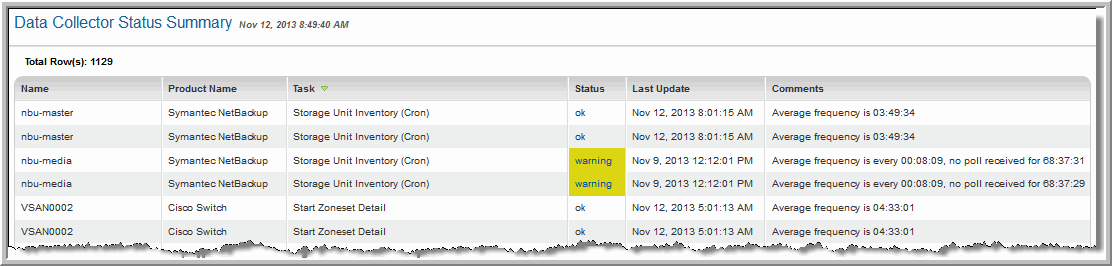 System Administration Reports > Data Collector Status Summary