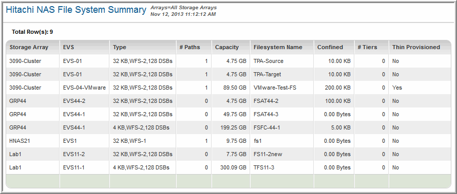 Capacity | Total capacity of the filesystem. Values are stored in the database as KiB and rendered according to your user profile preferences. |