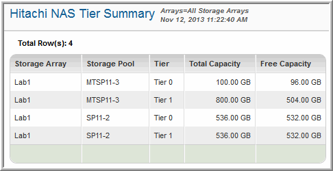 Storage Viewer for Capacity > Array Capacity & Utilization > Hitachi NAS Tier Summary