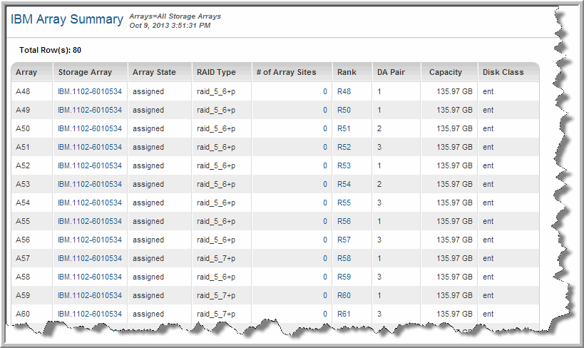 Storage Viewer for Capacity > Array Capacity & Utilization > IBM Array Summary