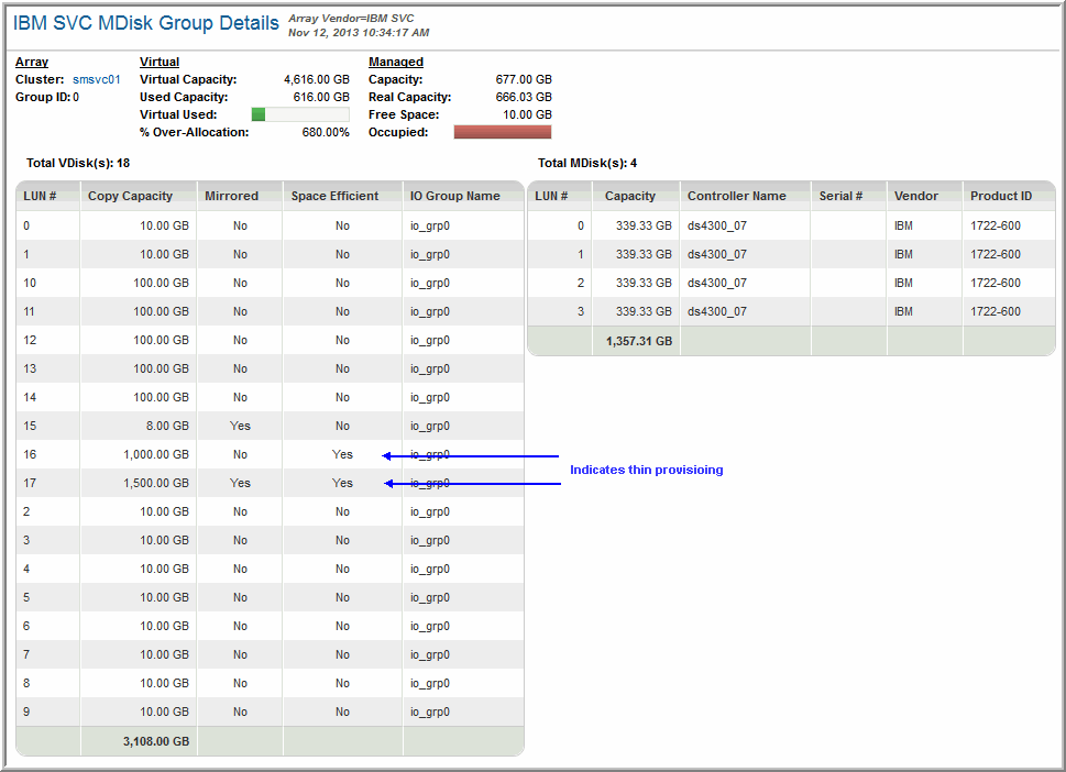 % Over-Allocation | The percentage is derived from the total VDisk Copy Capacity divided by the Space in MDisk Groups |