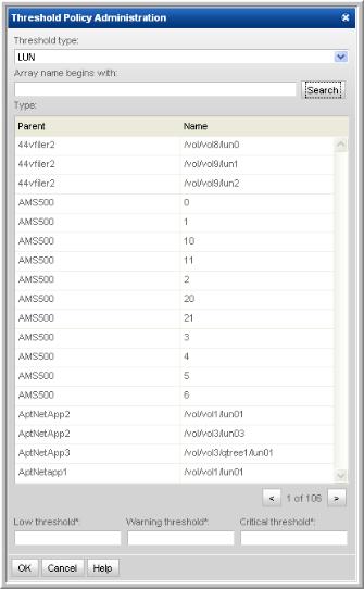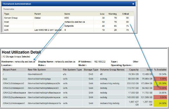 Threshold Policies enable you to establish Low, Warning, and Critical levels from which to manage the state of your capacity utilization. Various reports will represent the threshold crossings with highlighted fields to help you identify issues. See