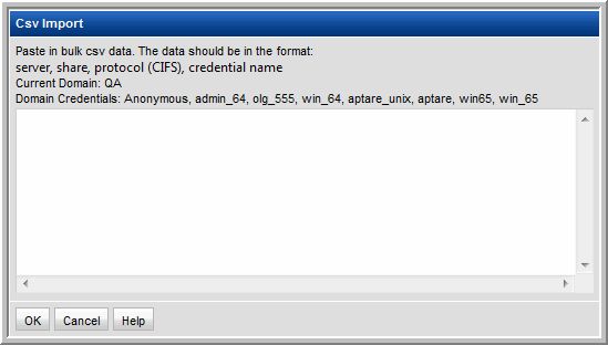 Shares* | Click Add to configure the CIFS shares that the collector will probe. Note that the Import button in this window enables bulk loading of CIFS shares. See Importing the CIFS Share Configuration. |