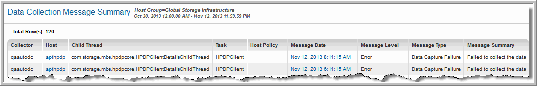 For additional details about the Collection Message Summary report, see the Hitachi Storage Viewer Report Reference Guide.